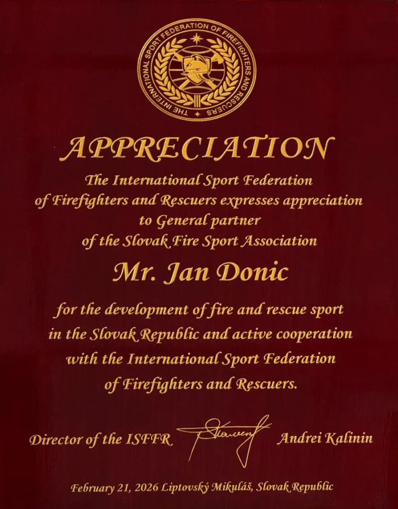 Počas galavečera sme si zároveň prevzali ocenenie za rozvoj hasičského a záchranného športu v Slovenskej republike a za aktívnu spoluprácu s Medzinárodná športová federácia hasičov a záchranárov. Toto uznanie si nesmierne vážime – je pre nás potvrdením, že naša práca a podpora majú zmysel. Sme hrdí, že môžeme byť súčasťou komunity, ktorá vychováva silné osobnosti, podporuje férovosť a buduje rešpekt k náročnej a obetavej práci hasičov a záchranárov.